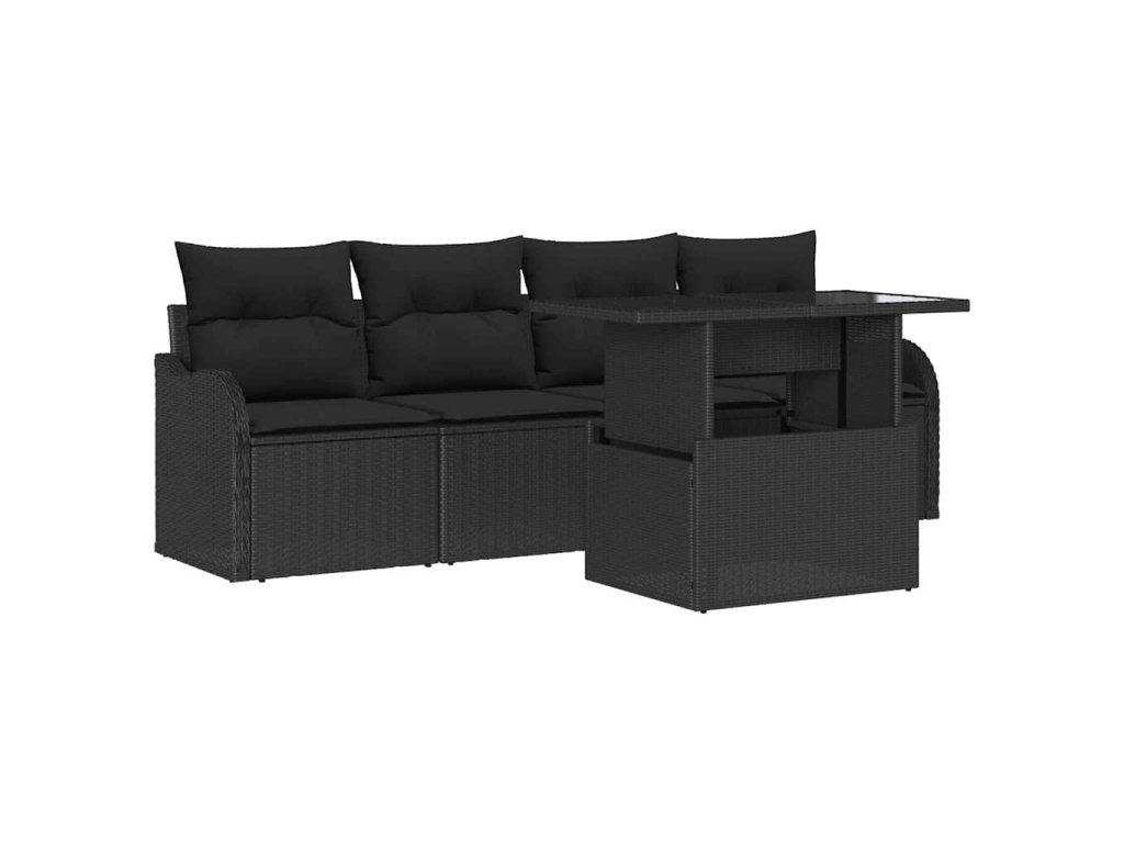 Sada zahradních pohovek s polštářem 5 pcs Černá Poly Ratan