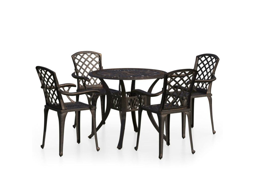 Zahradní stůl a židle z litého hliníku jsou robustní a hodně toho vydrží. Jelikož jsou vyrobené z materiálu, který nerezaví a nepodléhá klimatickým vlivům, jedná se o ideální nábytek pro venkovní použití. Vzhledem ke svému překrásnému designu zapůsobí bistro set ve vašem venkovním bydlení jako elegantní doplněk. Konferenční stolek má navíc uprostřed otvor, kam můžete zasunout slunečník, abyste se ochránili před sluníčkem či deštěm.