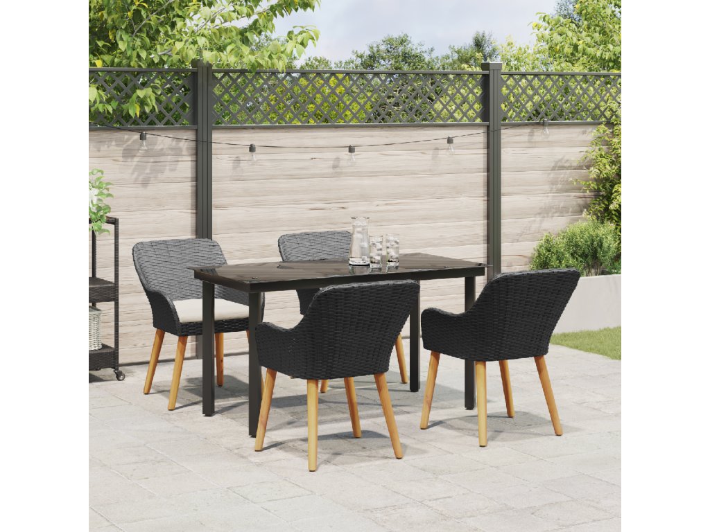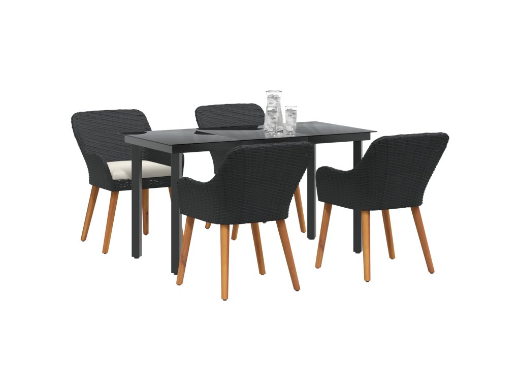 Zahradní jídelní souprava s polštářem 5 pcs Černá polyratan