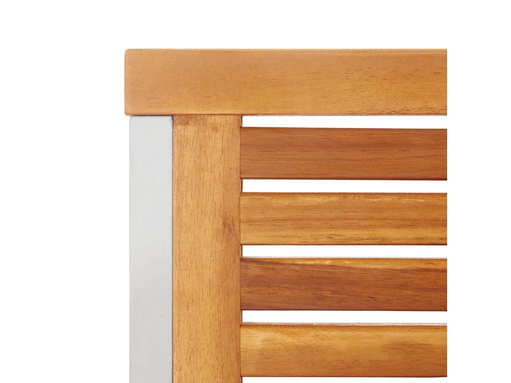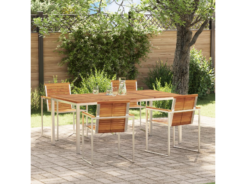Pevný rám: Silný ocelový rám zajišťuje stabilitu, abyste si mohli v klidu vychutnávat jídlo. Je odolný vůči venkovním podmínkám, což ho činí skvělou volbou pro časté venkovní posezení. Elegantní dřevěný povrch: Dřevěná deska stolu dodává přírodní vzhled a skvěle ladí s ocelovým rámem. Je navržena tak, aby měla dobrý odtok, což usnadňuje údržbu a skvěle vypadá na vašem venkovním prostoru. Odolný design: Tento set je vytvářen pro venkovní použití, zvládne jakékoli počasí. Můžete mít klid, že bude silný a vypadat skvěle, ať prší, nebo svítí slunce, díky svému chytrému designu. Moderní funkční styl: Svým moderním vzhledem a jednoduchými detaily se tento set snadno hodí do současných venkovních prostor, kombinuje funkčnost a styl bez námahy. Jednoduché pokyny pro údržbu: Aby byl v perfektním stavu, zakryjte ho, když ho nepoužíváte, a otřete vlhkým hadříkem. Tyto jednoduché tipy na údržbu zajistí, že váš jídelní set zůstane v dobrém stavu dlouho!- Materiál: Masivní dřevěná akácie