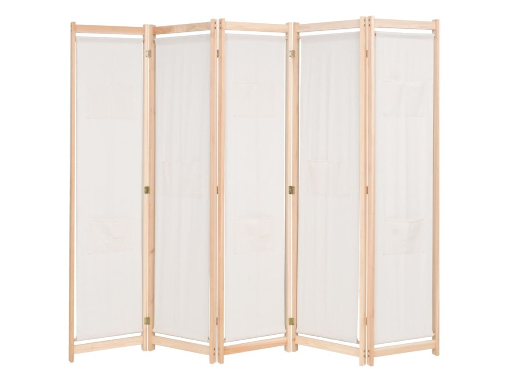 5dílný paraván krémový 200 x 170 x 4 cm textil