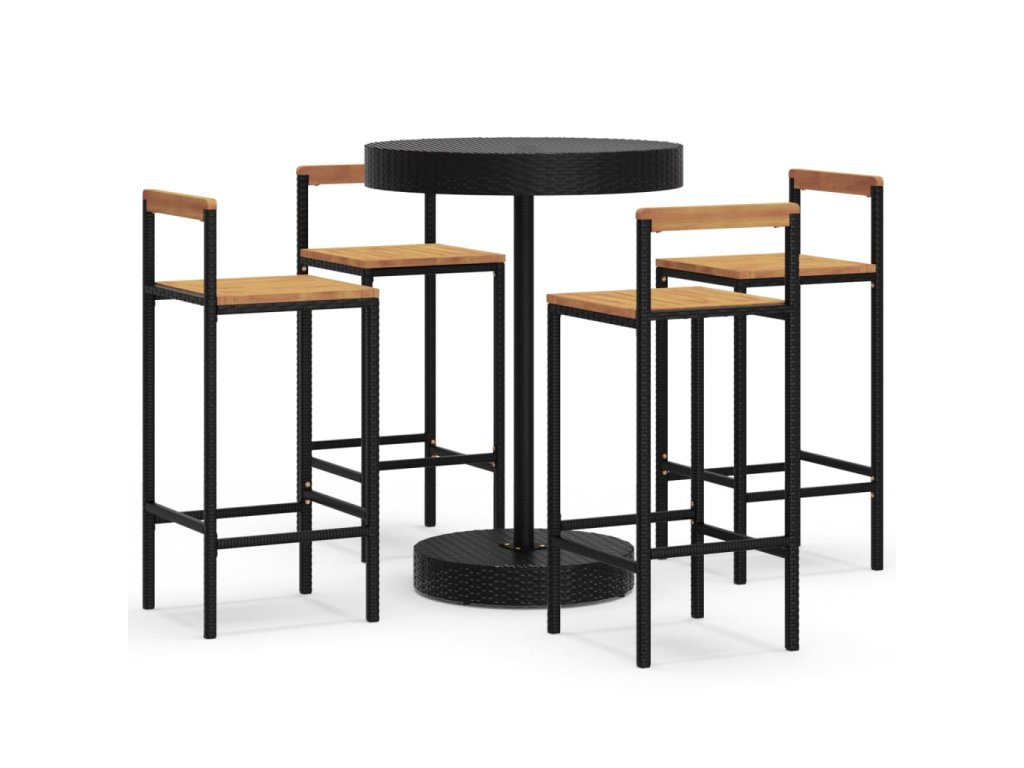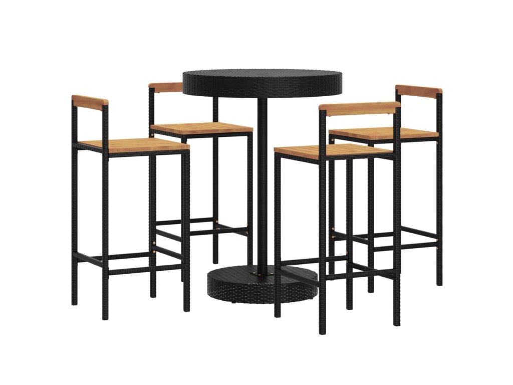 5dílný zahradní barový set černý polyratan a masivní akácie