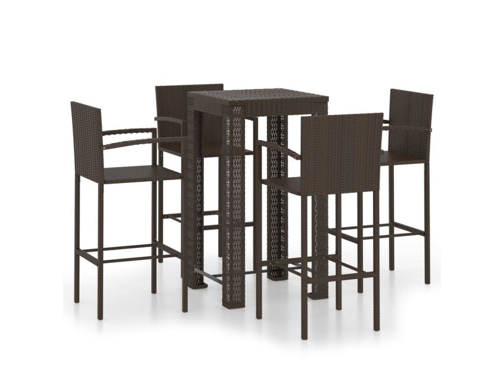 Základem barového stolu je rám z práškově lakované oceli, který mu dodává na stabilitě a odolnosti. Stolní deska vám skvěle poslouží k odkládání nápojů a občerstvení nebo k vystavení dekorativních předmětů. Stoličky mají pevnou konstrukci z oceli, která je opletená voděodolným PE ratanem, jsou tedy stabilní a snadno se přesouvají. Opěrka na nohy vám navíc při sezení zajistí další pohodlí.