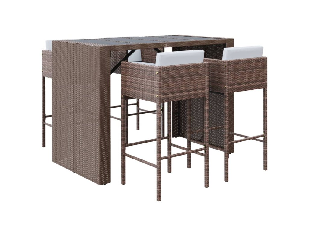5dílný zahradní barový set s poduškami hnědý polyratan