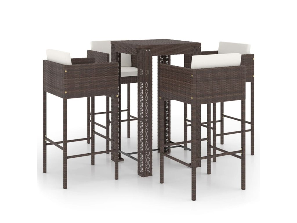 5dílný zahradní barový set s poduškami polyratan hnědý