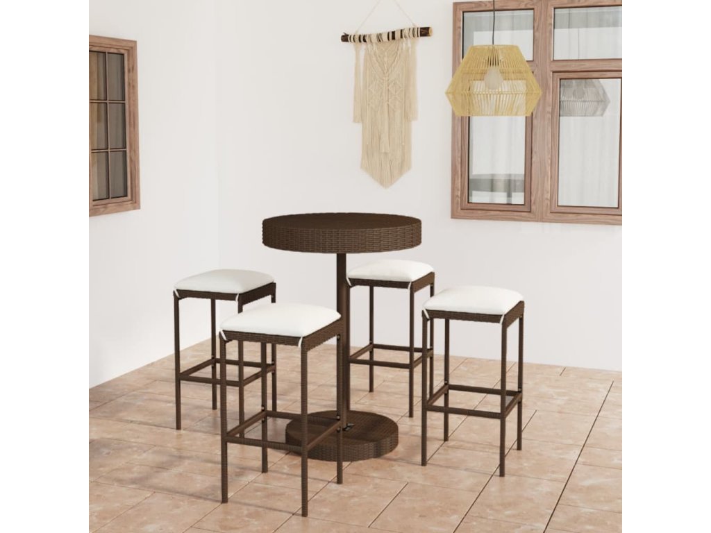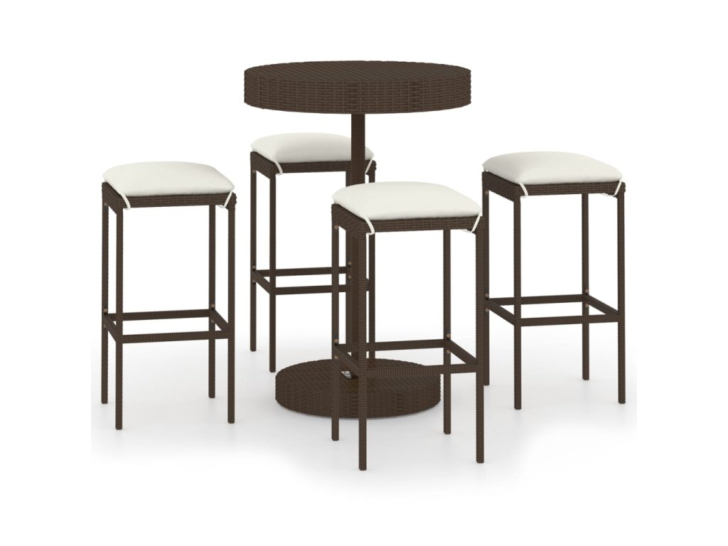 5dílný zahradní barový set s poduškami polyratan hnědý