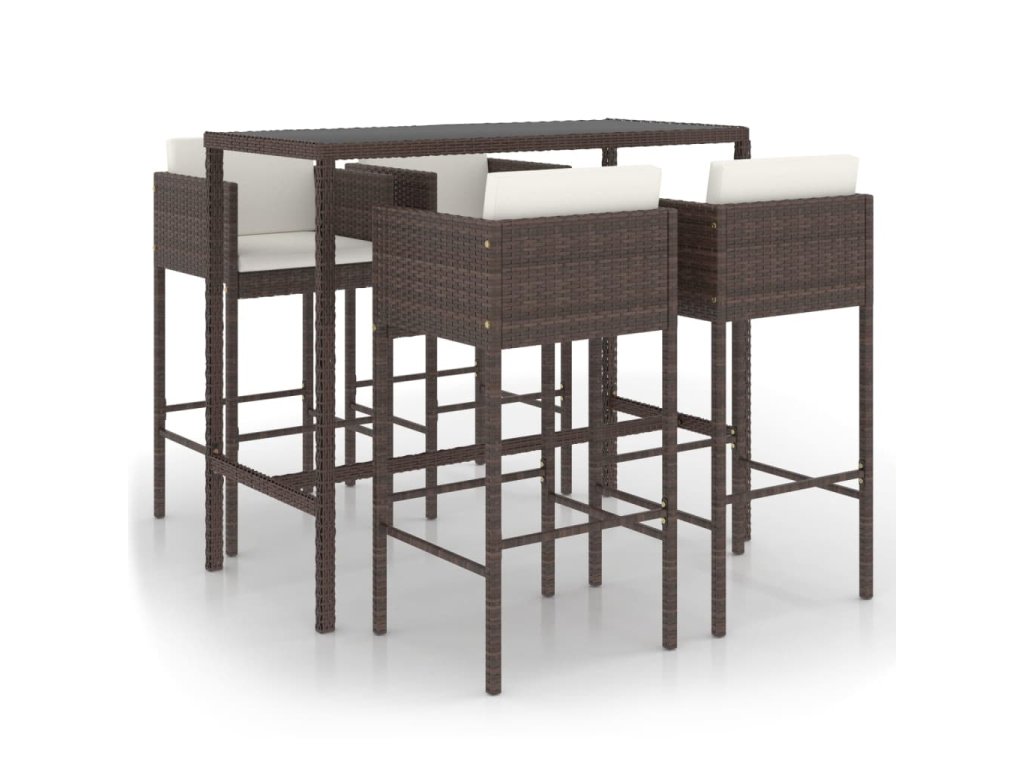 5dílný zahradní barový set s poduškami polyratan hnědý