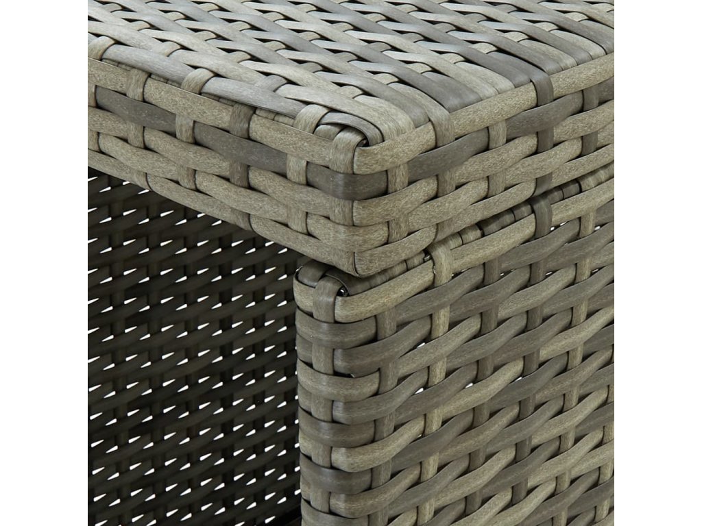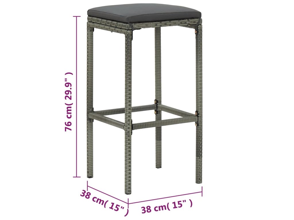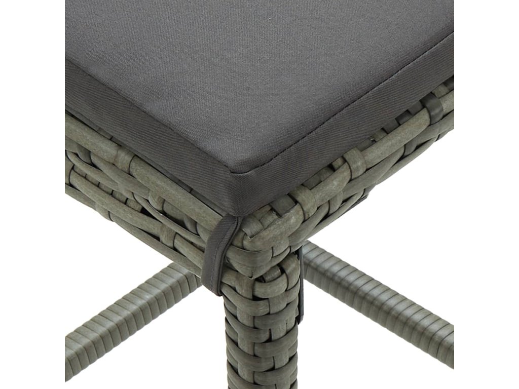 Barový set je vyrobený z PE ratanu, který výborně vzdoruje vodě i dalším klimatickým vlivům, a tak se snadno čistí, hodně toho vydrží a můžete ho klidně používat každý den. Rám z práškově lakované oceli přidává stolu i stoličkám na odolnosti a prodlužuje jejich životnost. Nábytek má ovšem zároveň lehkou konstrukci, abyste mohli všechny díly bez námahy přesouvat. Tlusté odnímatelné podušky na sedáky vám zajistí mimořádné pohodlí. Jejich potahy mají navíc zapínání na zip, což výrazně usnadňuje jejich sejmutí a praní.