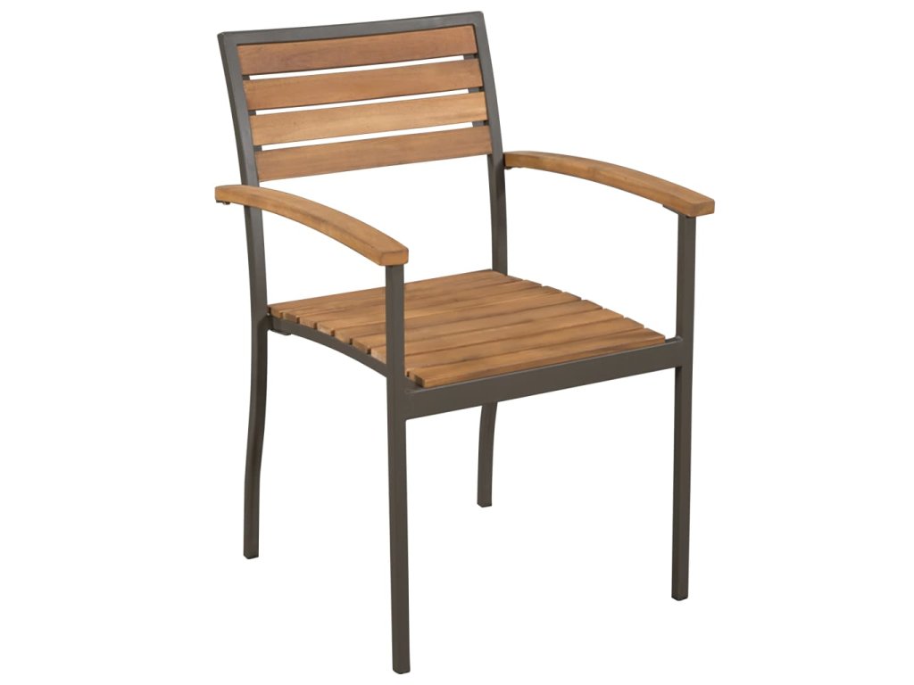 Stůl i židle jsou vyrobeny z masivního akáciového dřeva ošetřeného olejem a s laťkovým designem. Ocelové rámy zajišťují jejich pevnost a stabilitu, a navíc jim propůjčují industriální vzhled. Pokud je právě nepoužíváte, je možné židle stohovat, což vám ušetří místo.