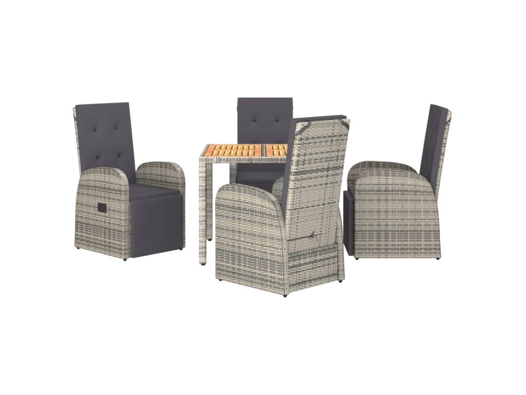 5dílný zahradní jídelní set s poduškami šedý polyratan