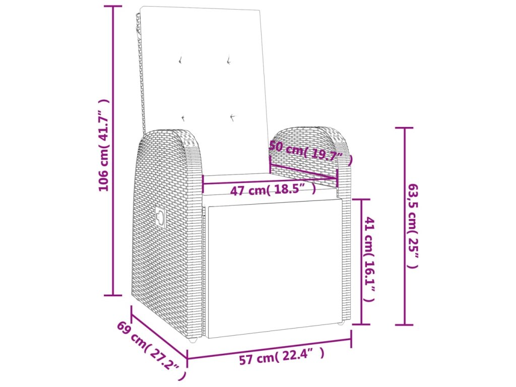 - Rozměry sezení: 57 x 69 x 106 cm (Š x H x V)