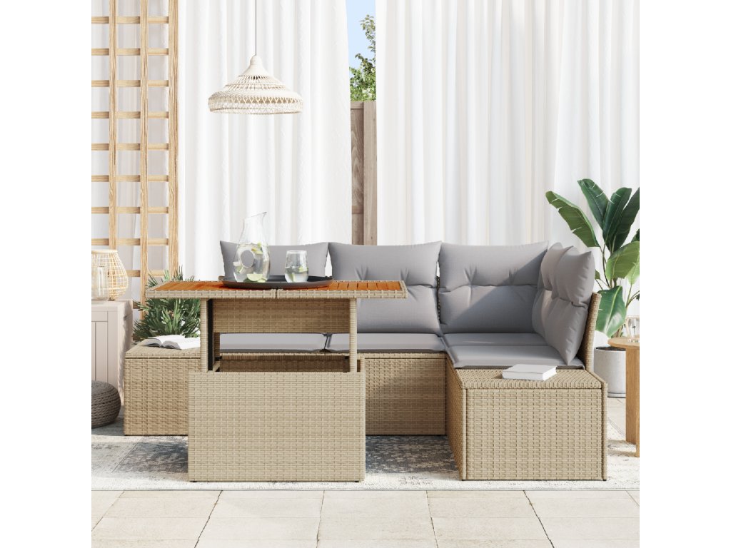 Sada zahradních pohovek s polštářem 5 pcs Beige a šedá