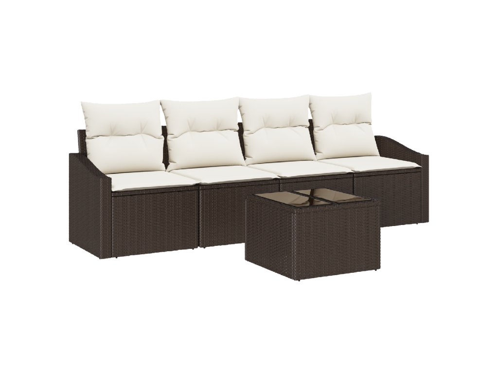Set pohovek s polštářem 5 pcs Hnědá a krémová polyratan
