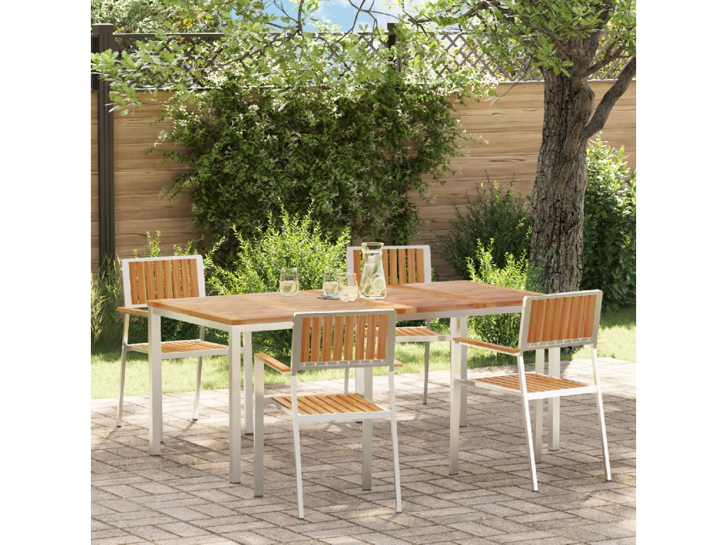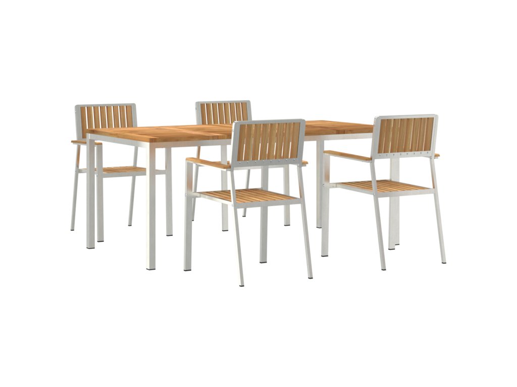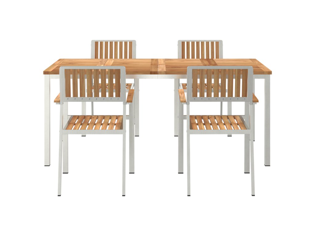 - Rám z nerezové oceli: Tento zahradní jídelní set má pevný rám z nerezové oceli, což zajišťuje stabilitu a odolnost venku. Materiál zvládá vlhké podmínky, takže je to váš spolehlivý parťák pro venkovní jídla. Nerezová ocel vypadá skvěle a zároveň je funkční a stylová.
