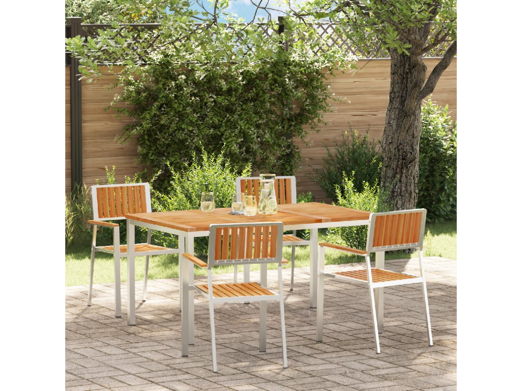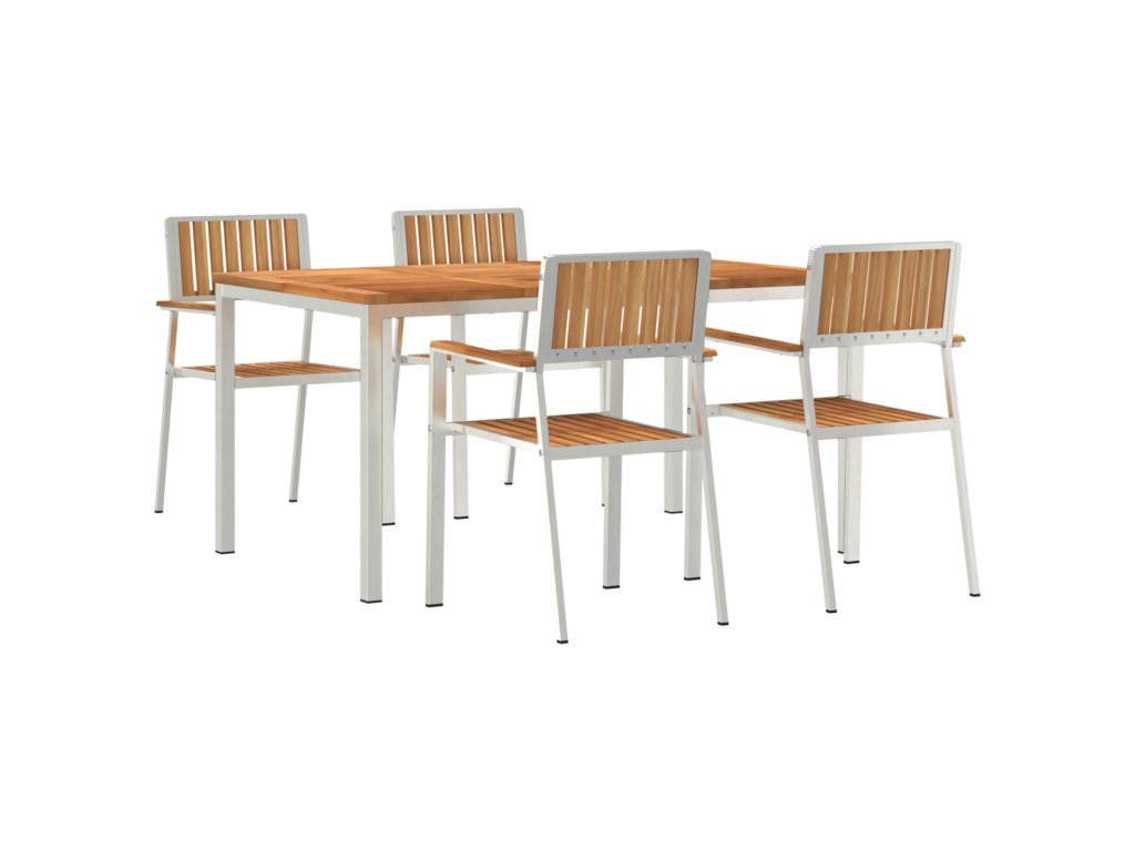 Tento úžasný moderní venkovní jídelní set přináší do každé zahrady nebo terasy eleganci a užitečnost. Jeho stylový, čistý design z prvotřídní nerezové oceli zaručuje, že vydrží. Hnědé tóny se krásně hodí k různým venkovním stylům, a vytváří tak skvělou atmosféru pro příjemné stolování. Je ideální na jarní a letní posezení venku, a stane se vaším oblíbeným místem pro relaxaci a užívání si slunečních paprsků.