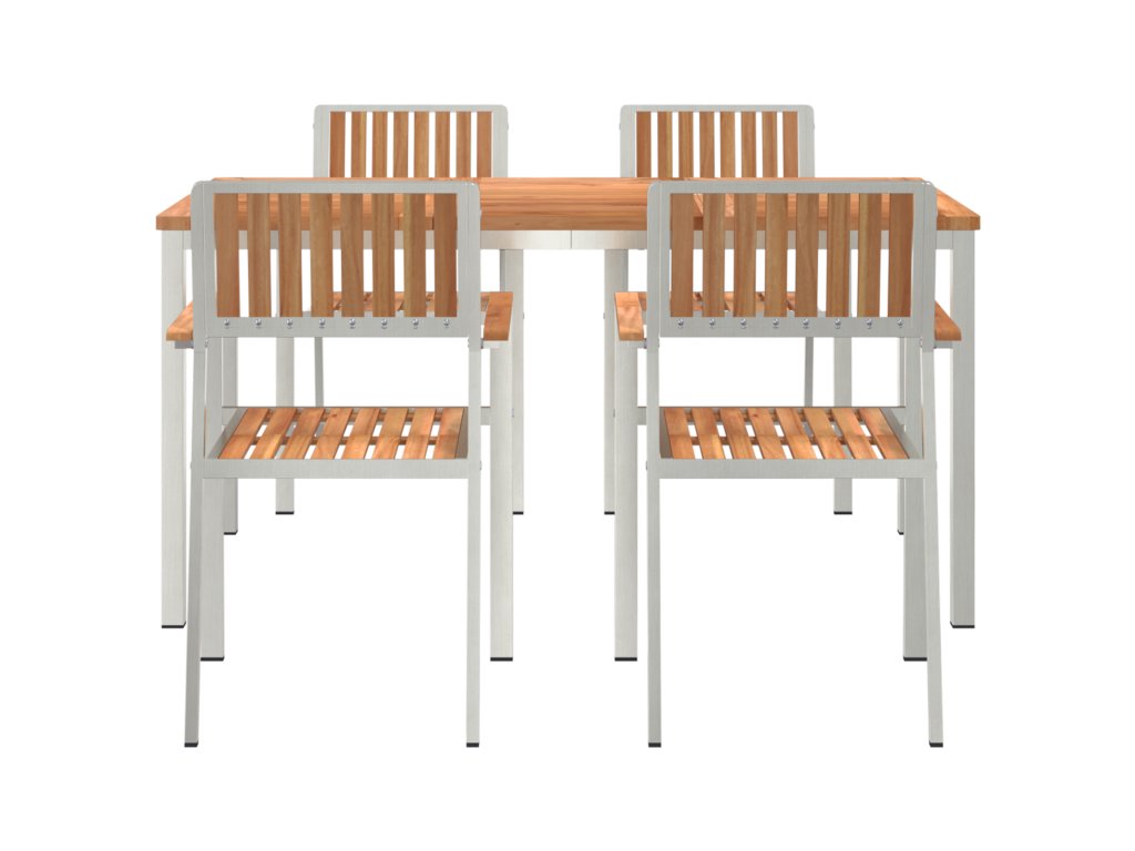 - Rám z nerezové oceli: Tento zahradní jídelní set má pevný rám z nerezové oceli, což zajišťuje stabilitu a odolnost venku. Materiál zvládá vlhké podmínky, takže je to váš spolehlivý parťák pro venkovní jídla. Nerezová ocel vypadá skvěle a zároveň je funkční a stylová.