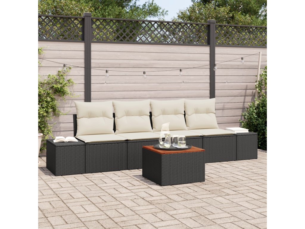 Sada zahradních pohovek s polštářem 5 pcs Černá Poly ratan