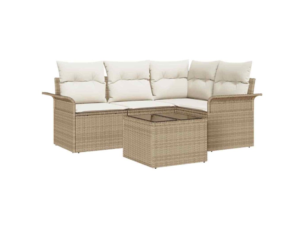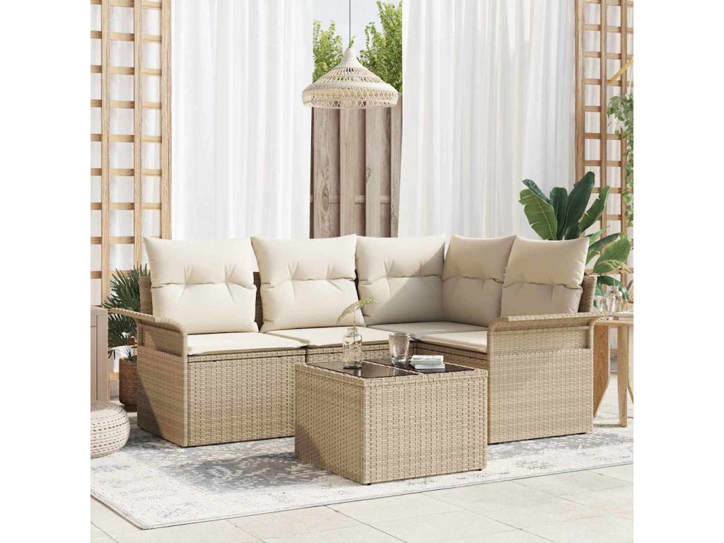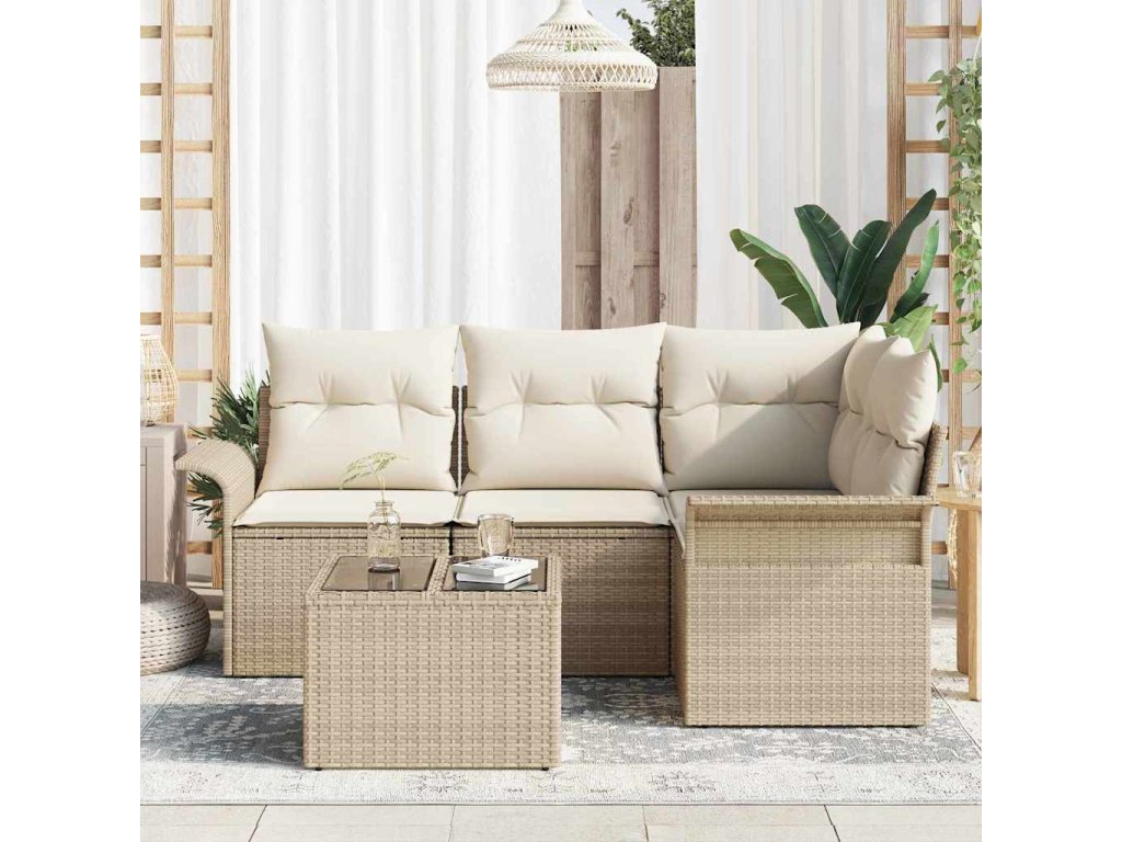 Sada zahradních pohovek s úložištěm 5 pcs Béžová polyratan