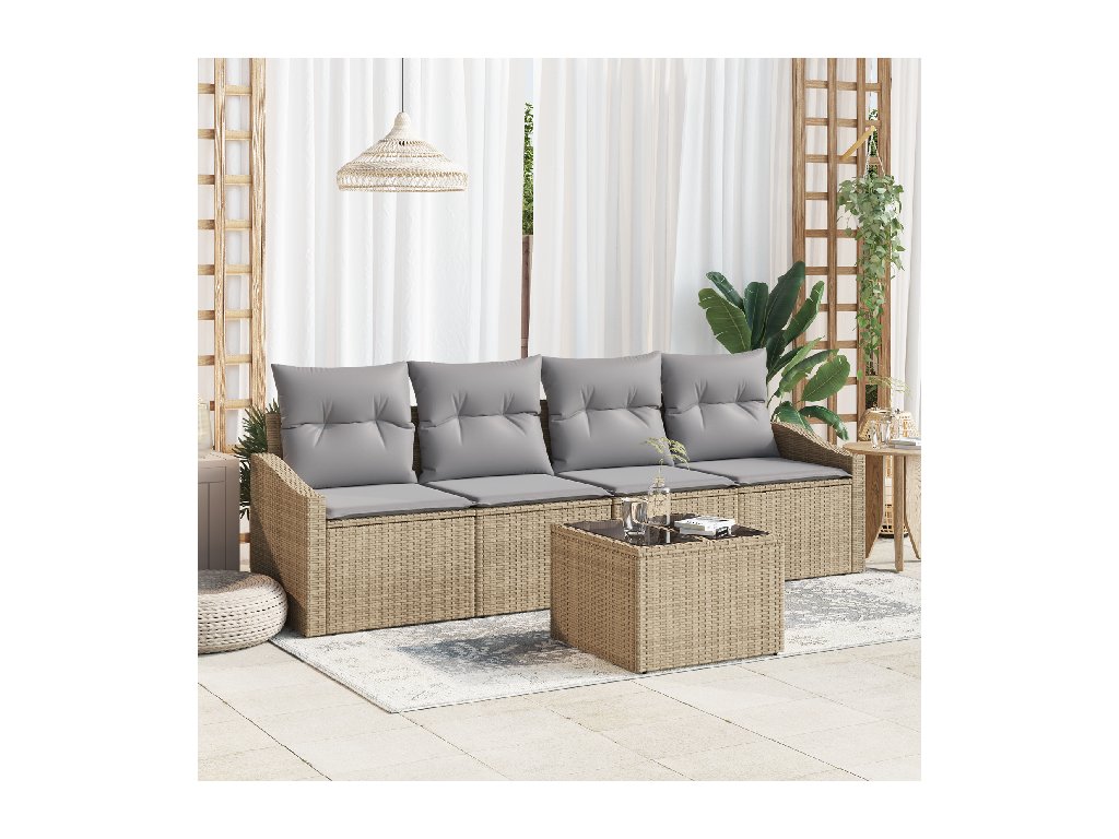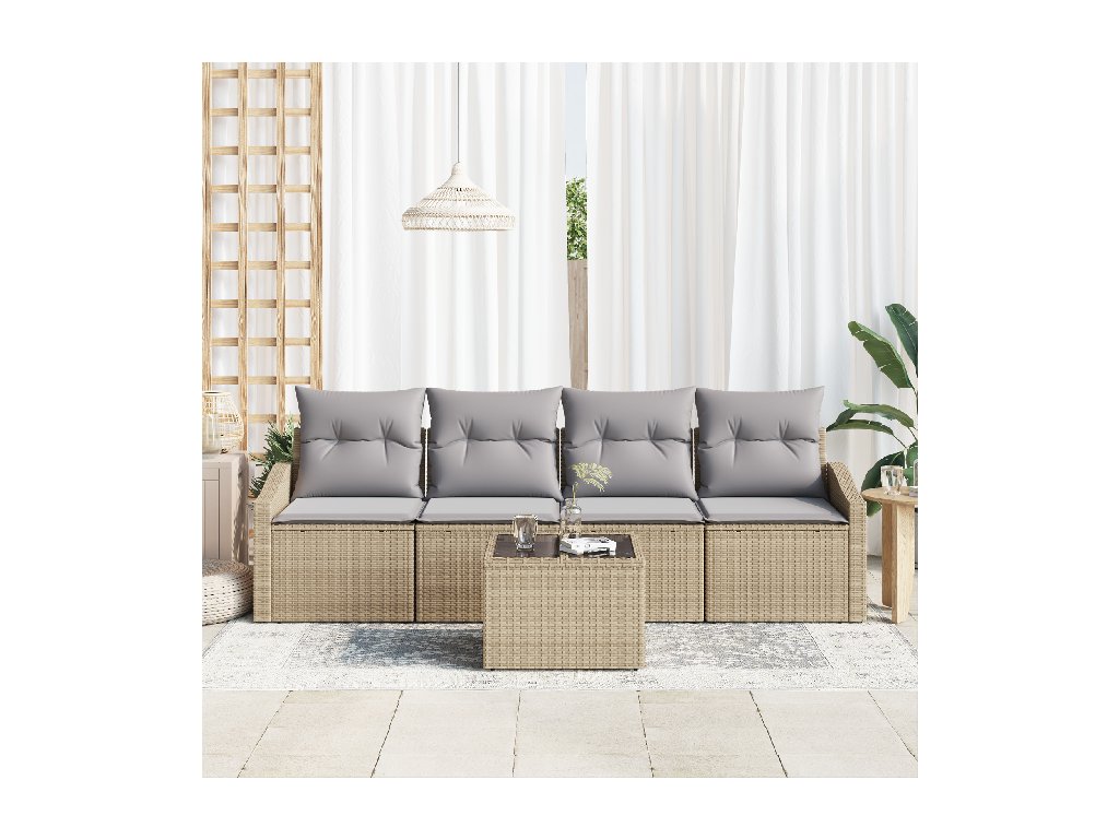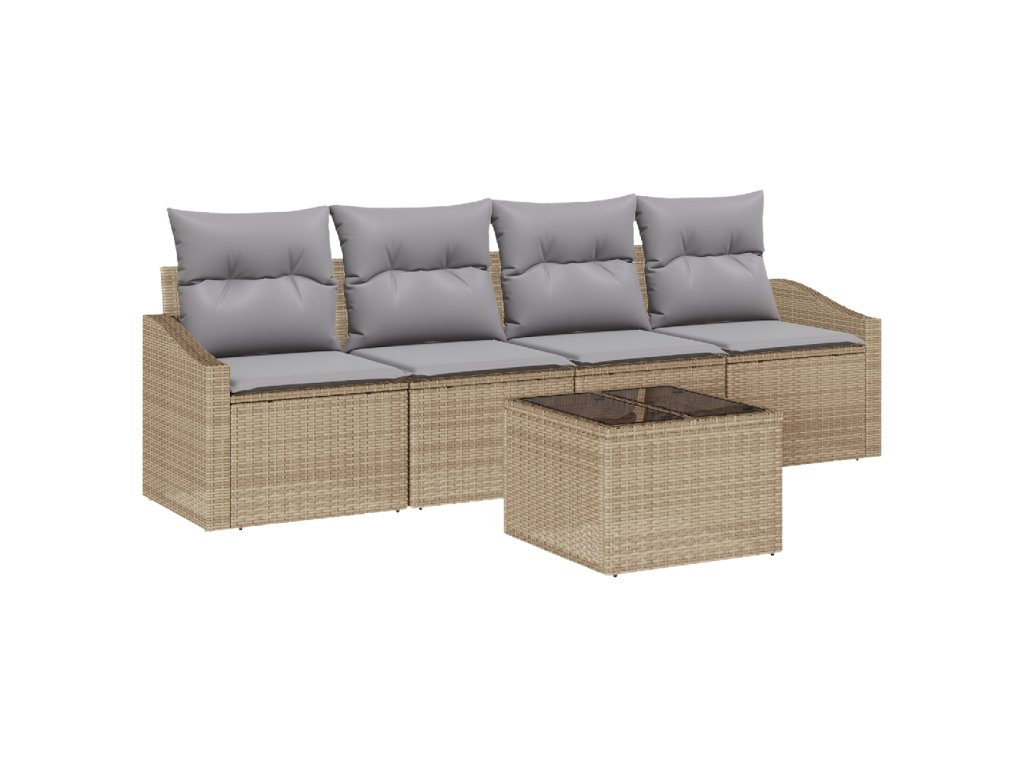 Set pohovek s polštářem 5 pcs Beige a šedá polyratan