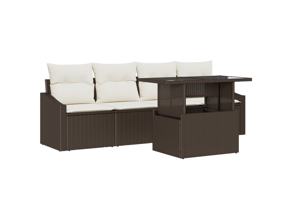 Poly ratanová konstrukce: Zahradní pohovková sestava je vyrobena z kvalitního poly ratanu, což je praktické a moderní. Materiál je odolný proti počasí a zároveň vypadá skvěle, ideální pro venkovní použití. Všechny součásti: Sada obsahuje dvě centrální sedačky a dvě arm pohovky s polštáři, které zajišťují pohodlí. Stůl poskytuje prostor pro jídlo nebo neformální povídání. Modulární funkčnost: Navržena s ohledem na modularitu, takže si můžete upravit uspořádání podle potřeb. To zvyšuje použitelnost a radost ze sezení. Doporučené využití: Určeno pro zahradu a terasu, pohovka se hodí do různých prostředí. Je skvělá pro různá venkovní setkání, rozšiřuje obytný prostor do přírody. Údržba a péče: Chcete-li zachovat její vzhled, chraňte ji obalem, když ji nepoužíváte, a uložte polštáře dovnitř při špatném počasí. Pravidelné čištění zajistí, že sestava zůstane středem pozornosti pro akce a relaxaci.- Barva: Hnědá a krémová