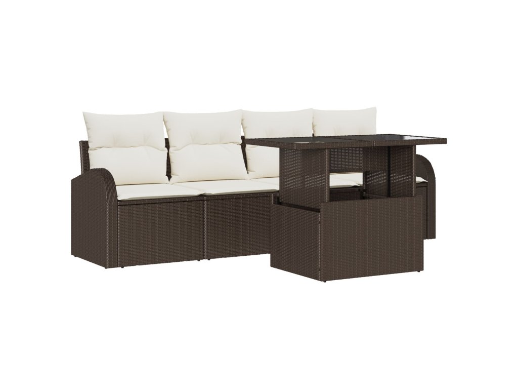 Odolné materiály: Zahradní pohovka je vyrobená z kvalitního poly ratanového vlákna a práškově lakované oceli, což zaručuje spolehlivost a odolnost proti blednutí. Silná konstrukce zajišťuje dlouhou životnost, takže se stává oblíbenou volbou pro venkovní relaxaci po celý rok. Univerzální komponenty: Tato souprava obsahuje dvě centrální sedačky, dvě arm sofa a stůl, což umožňuje přizpůsobení vašim prostorovým potřebám. Flexibilita usnadňuje různá uspořádání, ať už pořádáte večírek nebo relaxujete o samotě. Funkční design: Výškově nastavitelný stůl snadno přechází od neformálních kávových chvil k elegantnímu stolování. Díky lehké, modulární konstrukci je přemisťování hračka. Ekologické vlastnosti: Odolnost proti UV záření a povětrnostním vlivům zajišťuje trvalou pohodu bez ohledu na klimatické podmínky. Pokyny pro péči: Používejte kryt, když je souprava v nečinnosti, abyste uchovali její vzhled. Tímto snadno udržujete pohovku v parádním stavu.- Barva: Hnědá