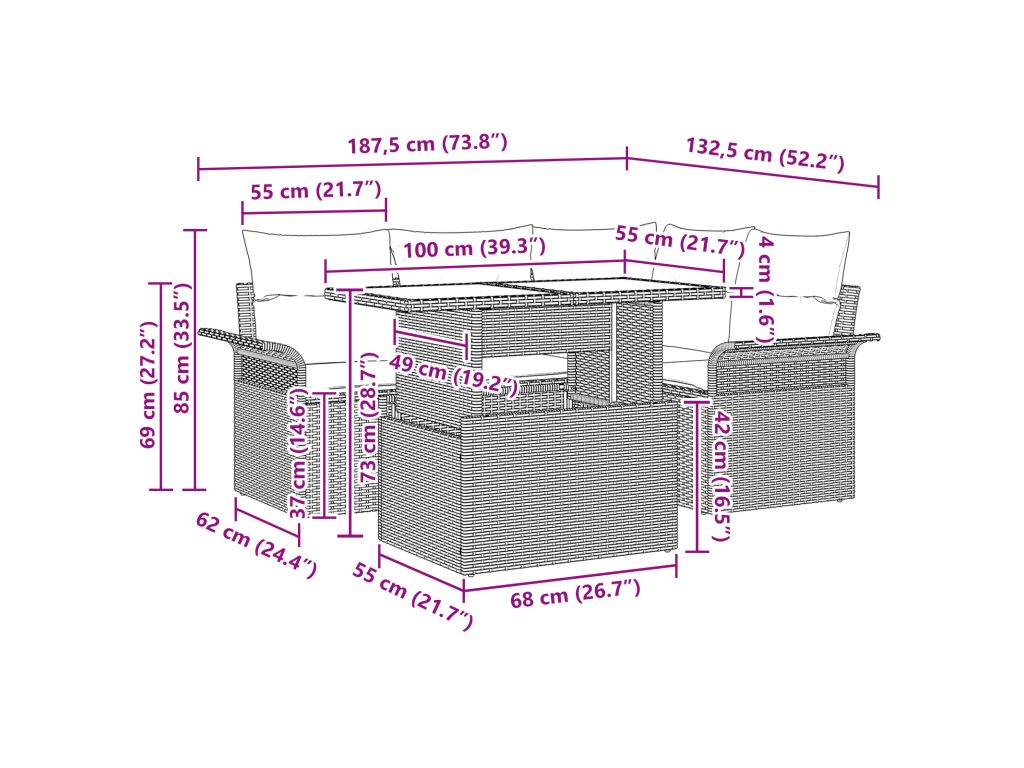 Tenhle modulární zahradní pohovkový set spojuje styl s komfortem, takže je ideální na venkovní lenošení. Má moderní design s jednoduchými a čistými liniemi a je vytvořený přímo pro zahrady a terasy. Díky odolným materiálům nabízí pohodlí pro vaši společnost nebo odpočinek o samotě. Poly ratan a masivní akáciové dřevo dodávají atraktivní vzhled, který skvěle ladí s různými venkovními prostory.