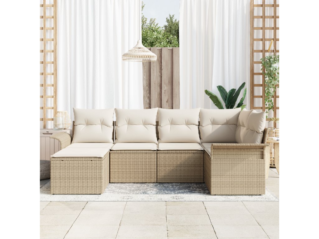 Sada zahradních pohovek s úložištěm 6 pcs Béžová polyratan