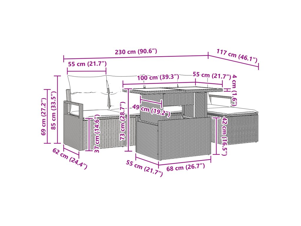 Tento modulární zahradní pohovkový set změní každou zahradu nebo terasu na stylovou a pohodlnou zónu. S moderním designem, čistými liniemi a minimalistickým přístupem, dává možnost flexibilně přeuspořádat moduly podle potřeby, takže skvěle zapadne do různých prostor a příležitostí. Kombinace polyratanu a polyesteru mu dodává módní vzhled, který je nejen vizuálně atraktivní, ale i funkční pro milovníky venkovního posezení a klidných chvílí.