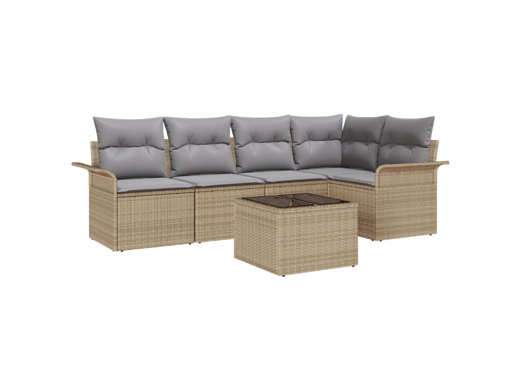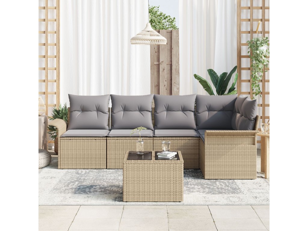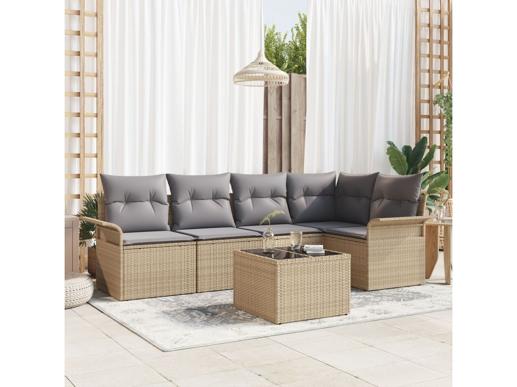Sada zahradních pohovek s polštářem 6 pcs Béžová polyratan