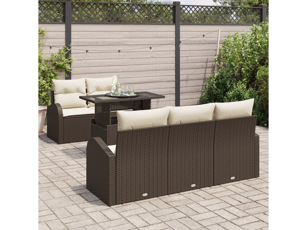 Sada zahradních pohovek s polštářem 6 pcs Hnědá polyratan