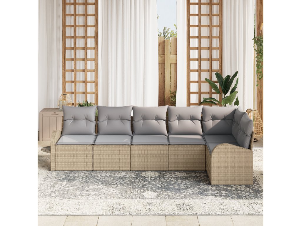 Set pohovek s polštářem 6 pcs béžová a světle šedá polyratan