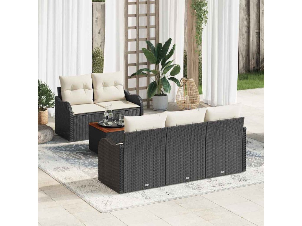 Sada zahradních pohovek s polštářem 6 pcs Černá a krémová