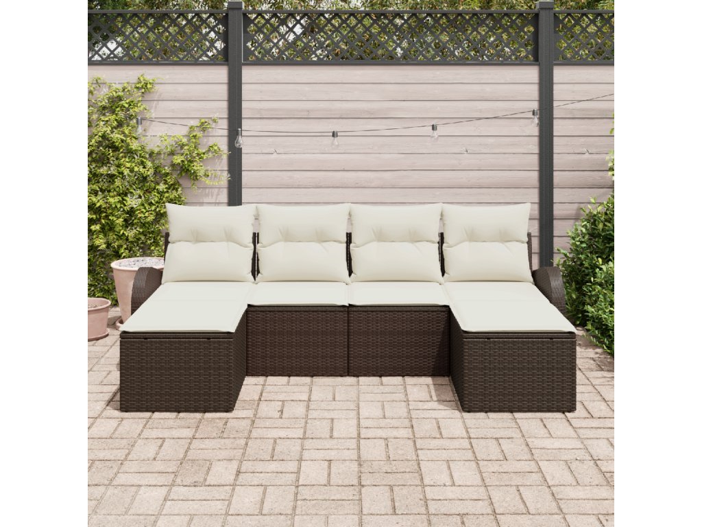 Set pohovek s polštářem 6 pcs Hnědá a bílá polyratan