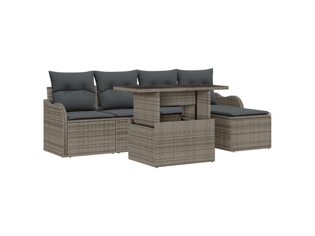 Sada zahradních pohovek s polštářem 6 pcs Šedá Poly ratan