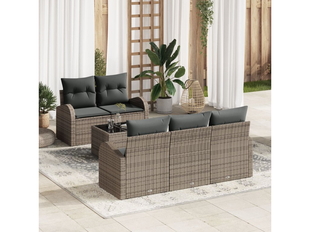 Materiály: Sada je vyrobená z kvalitního poly ratanu, který vypadá skvěle a je šetrný k přírodě díky recyklovatelnosti. Robusní rám z práškově lakované oceli zajišťuje odolnost proti počasí a elegantní vzhled, který skvěle doplní každou zahradu. Tato kombinace zvyšuje trvanlivost a je snadná na údržbu. Zahrnuté komponenty: Sada obsahuje pohodlné sezení, včetně středního sedátka a opěrek na ruce s polštáři z polyesteru, které nabízejí měkké a podpůrné pohodlí. Všechny kusy mají pevné nohy z oceli, což zajišťuje stabilitu. Hlavním kouskem je stolek se skleněným povrchem, který nabízí další prostor na nápoje a dekorace a poskytuje kompletní lounge řešení. Vlastnosti / Funkce / Design: Navrženo pro příjemné venkovní užití, sada se pyšní UV-odolnými materiály, které si udržují svou kvalitu i na slunci, zatímco modulární konstrukce umožňuje snadné přesouvání pro různé uspořádání. Tento přizpůsobivý design vyhovuje různým společenským situacím a dává ti svobodu uspořádat prostor podle svých představ. Doporučené použití: Ideální pro zahrady a terasy, sada skvěle zapadne do letních venkovních aktivit, jako jsou neformální setkání, klidné osamění nebo živé večírky. Ať už je umístěná u bazénu, mezi bujnou vegetací nebo pod zastřešenou terasou, vytváří příjemnou atmosféru k odpočinku a užívání. Údržba a péče: Udržování soupravy v perfektním stavu je snadné – stačí ji jednou za čas otřít vlhkým hadříkem. Doporučuje se mít ochranný kryt během špatného počasí, aby se zabránilo opotřebování.- Barva: Šedá