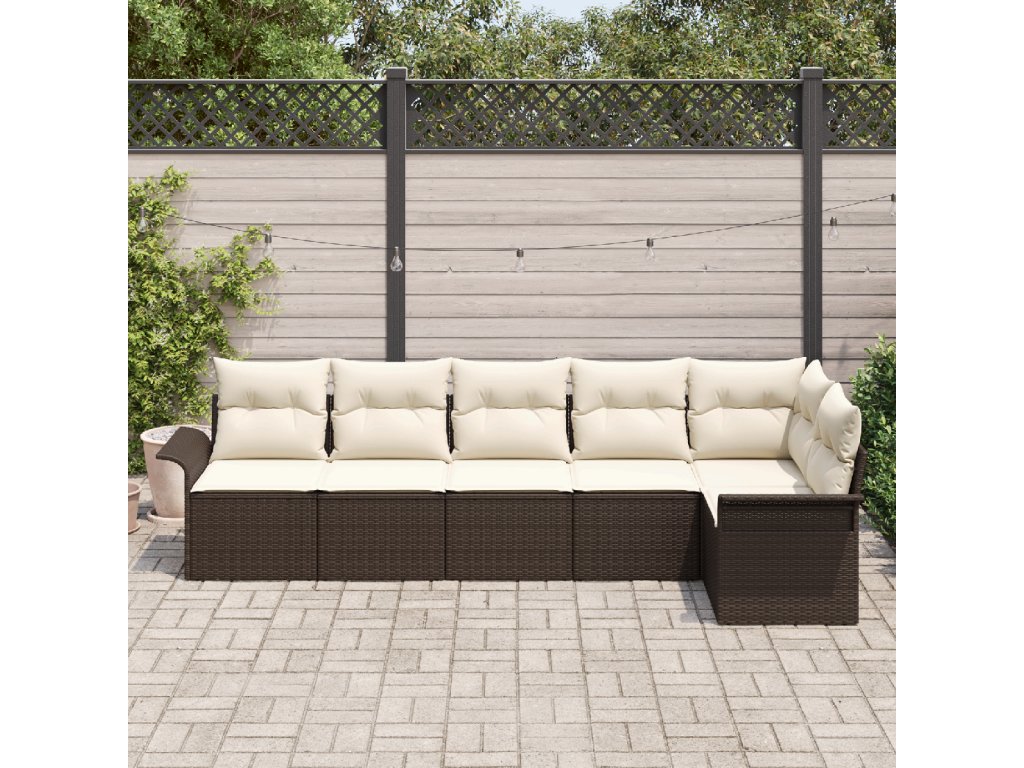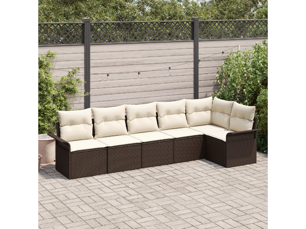 Sada zahradních pohovek s polštářem 6 pcs Hnědá Poly ratan