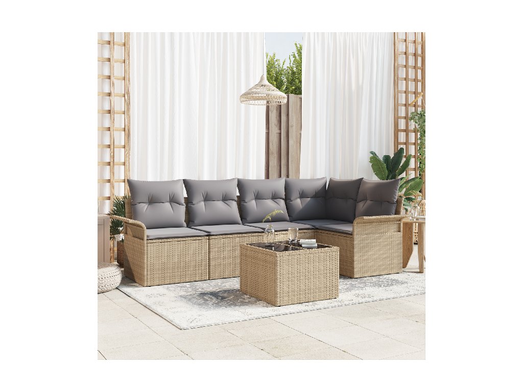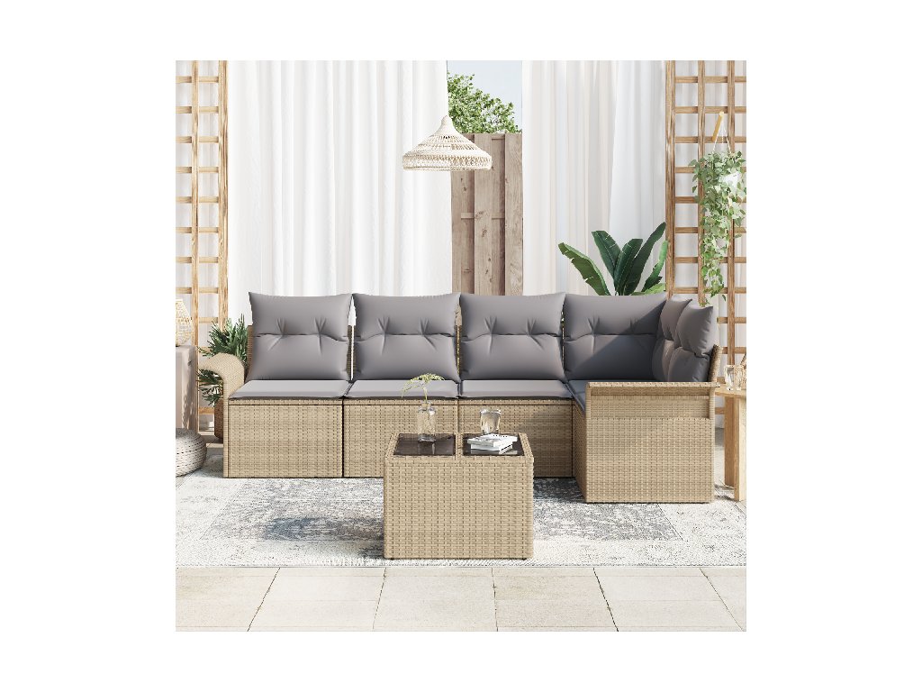 Sada zahradních pohovek s polštářem 6 pcs Béžová Poly ratan