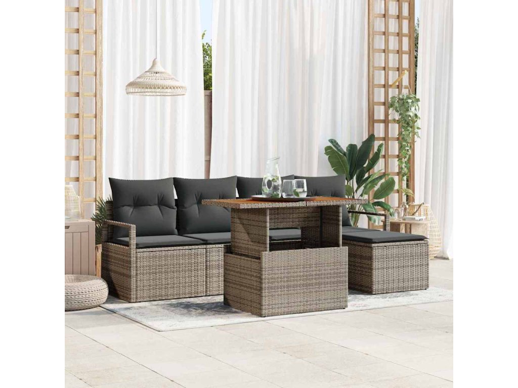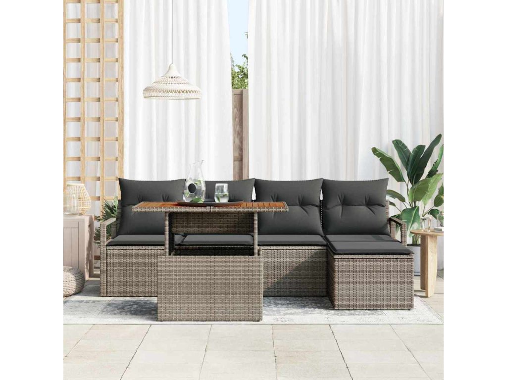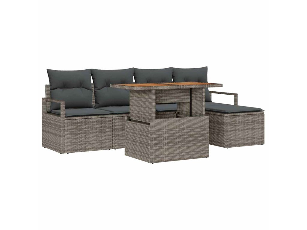 Sada zahradních pohovek s úložištěm 6 pcs Šedá Poly ratan
