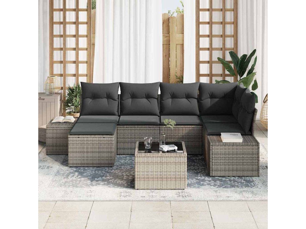 Sada zahradních pohovek s polštářem 6 pcs Šedá polyratan