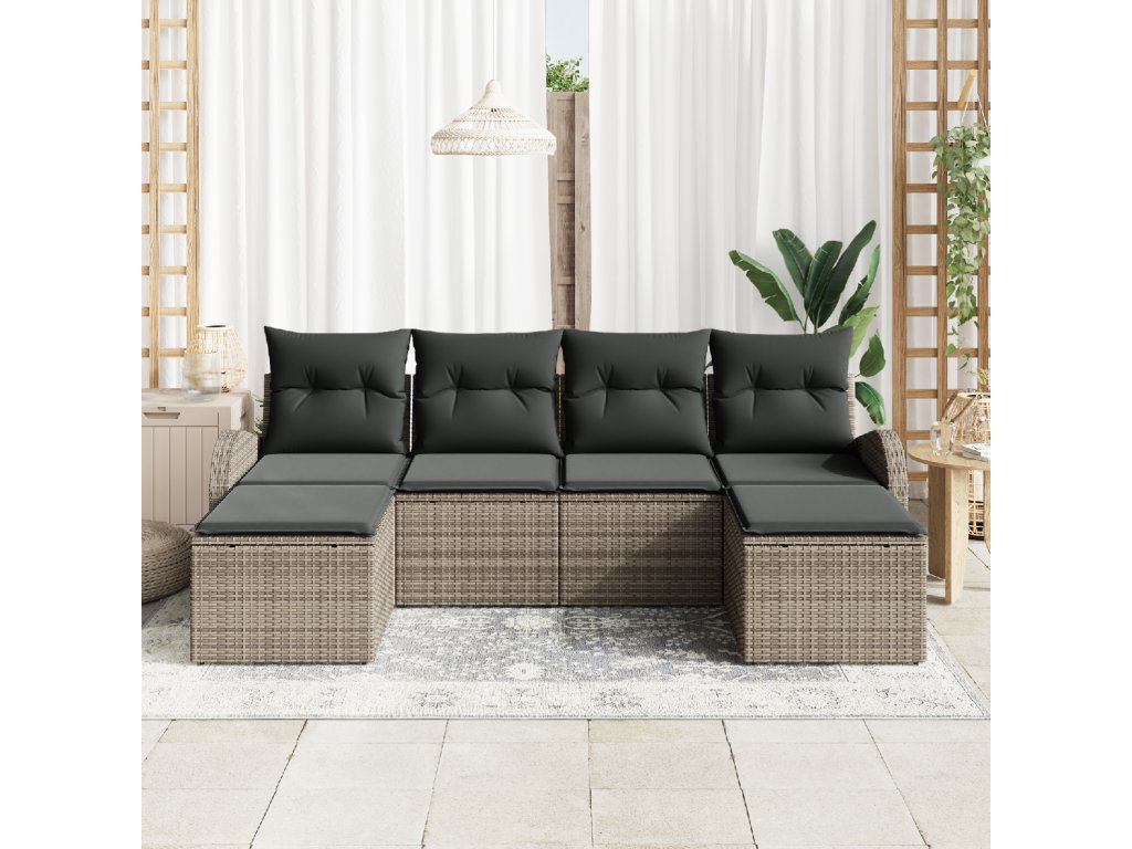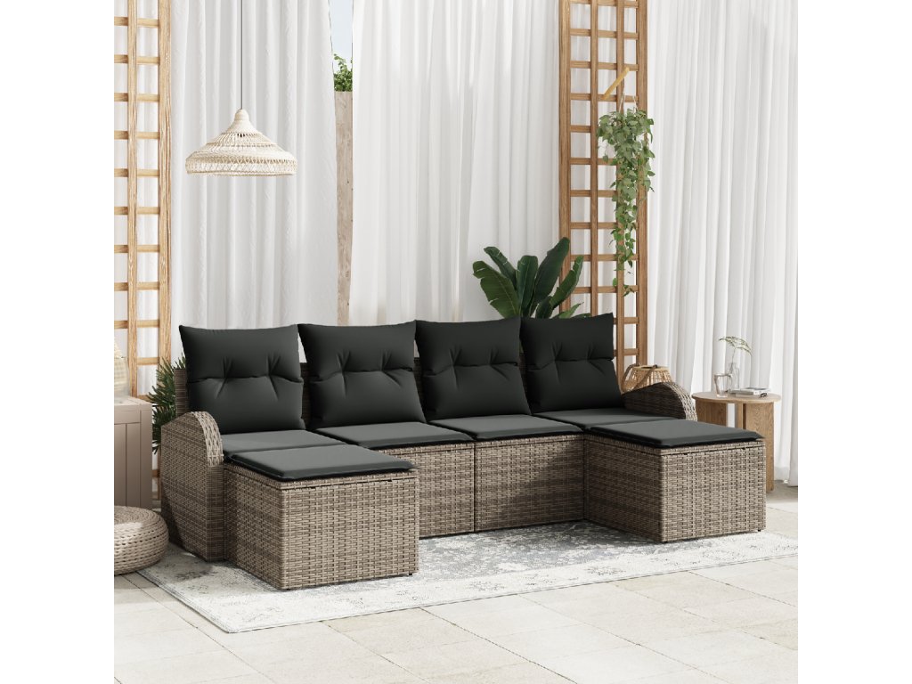 Set pohovek s polštářem s úložištěm 6 pcs Šedá polyratan