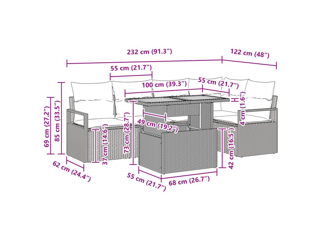 Tento elegantní zahradní jídelní set z polyratanu nabízí dokonalou kombinaci stylu a funkčnosti, přinášející pocit moderního designu do vašeho venkovního prostoru. Ideální pro ty, kdo ocení čisté linie a minimální ornamentaci, tento set se bezproblémově integruje do zahrad nebo teras se svým elegantním, modulárním designem. Navrženo pro použití na jaře a v létě, kombinuje sofistikovaný vzhled s praktickými funkcemi, poskytující pohodlné uspořádání pro jídlo nebo sociální setkání.