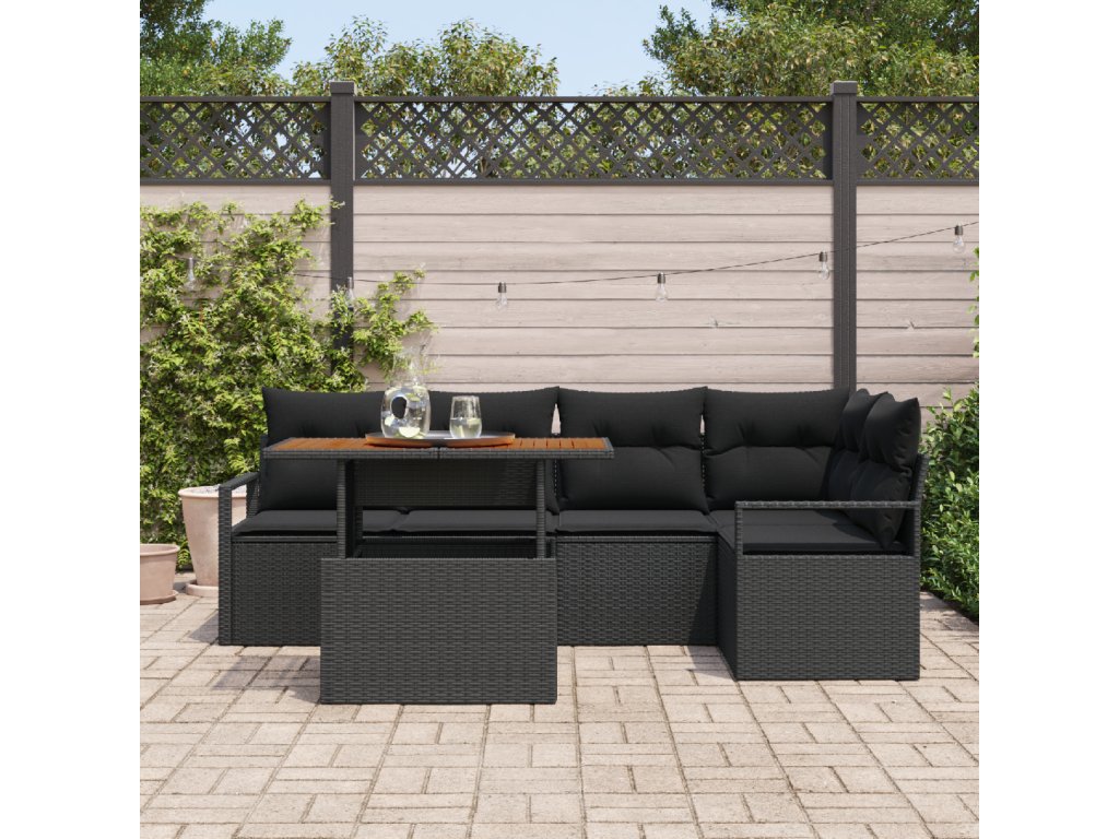 Zahradní jídelní souprava s polštářem 6 pcs Černá a hnědá