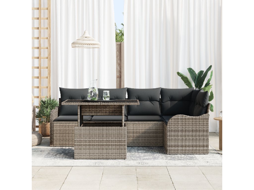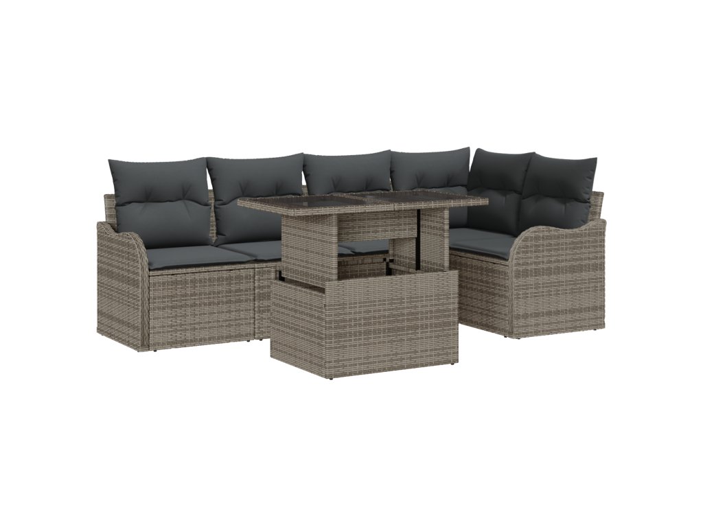 Jídelní souprava s polštářem 6 pcs Šedá Poly ratan