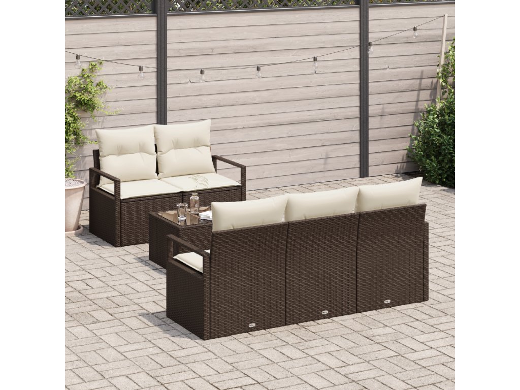 Set pohovek 6 pcs Hnědá a krémová polyratan