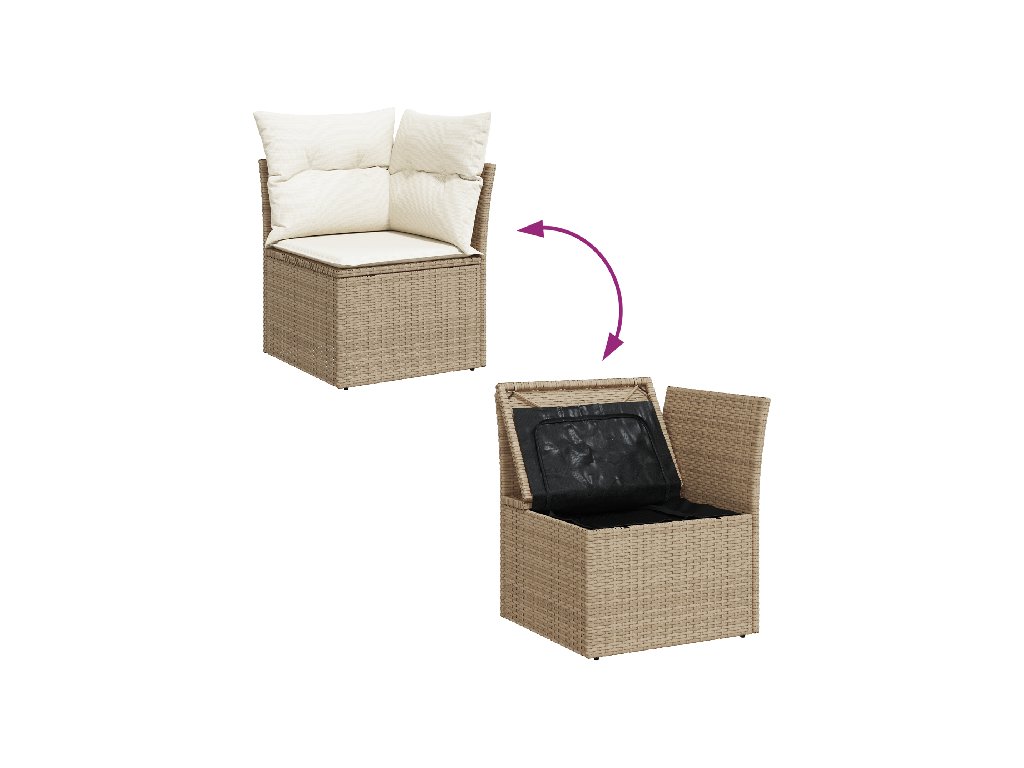 Poly ratanová konstrukce Souprava je z kvalitního poly ratanu, který je odolný a má dlouhou životnost. I při slunečním záření a proměnlivém počasí si udrží skvělý vzhled. Dokončený design zadní strany Tohle zadní provedení vypadá skvěle odkudkoli, takže ji můžete umístit kamkoliv v zahradě nebo na terase. Zajišťuje, že sezení vypadá hezky z každého úhlu. Rám z práškově lakované oceli Tento rám je navržen z práškově lakované oceli, což zajišťuje stabilitu a odolnost. Chráněný povrch je ideální pro venkovní užívání bez časté údržby. Zakřivené opěrky rukou pro pohodlí Díky jemně zakřiveným opěrkám je tato souprava hrozně pohodlná. Poskytuje skvělou oporu pro ruce, ideální na odpočinek nebo příjemné rozhovory. Úplná úložná možnost Integrované úložné prostory vám umožní schovat venkovní potřeby. Udržují polštáře a nářadí skryté, a přitom snadno přístupné, což dělá život venku organizovanější a stylovější.- Barva: Hnědá