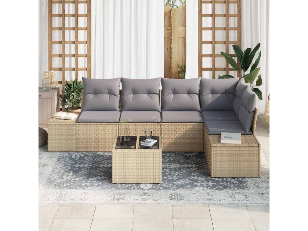 Sada zahradních pohovek s polštářem 6 pcs Béžová a Světle šedá