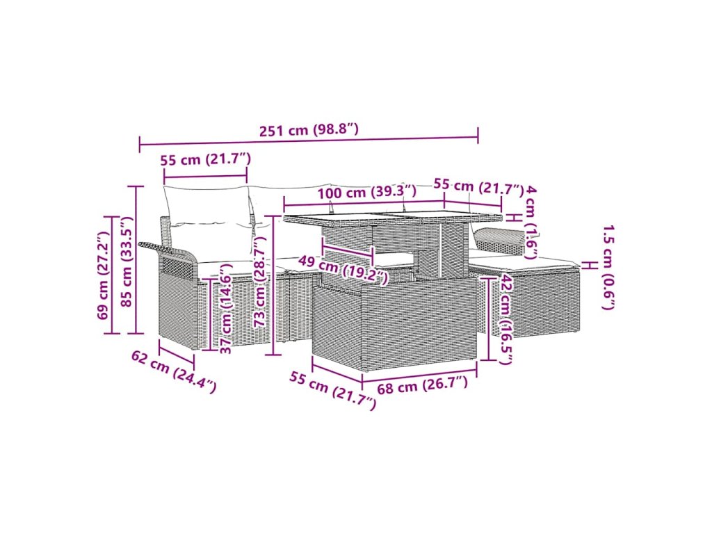 Sada zahradních pohovek s polštářem 6 pcs Béžová Poly ratan