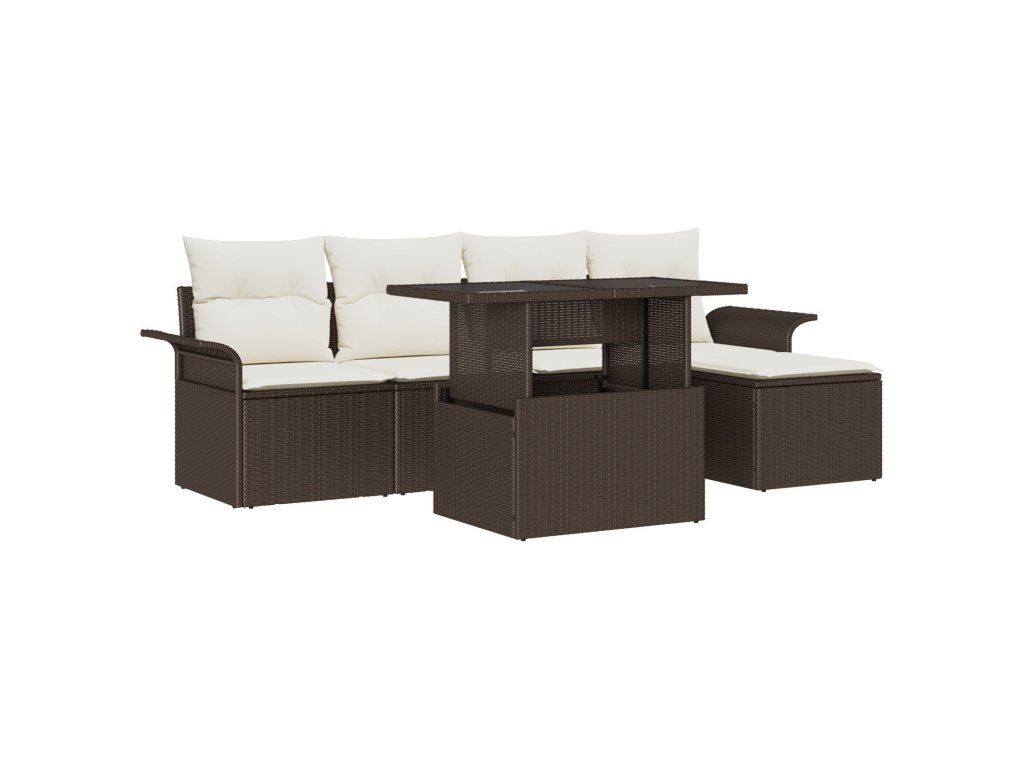 Sada zahradních pohovek s polštářem 6 pcs Hnědá polyratan