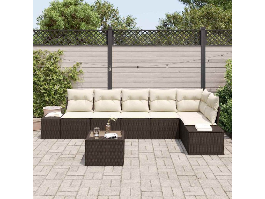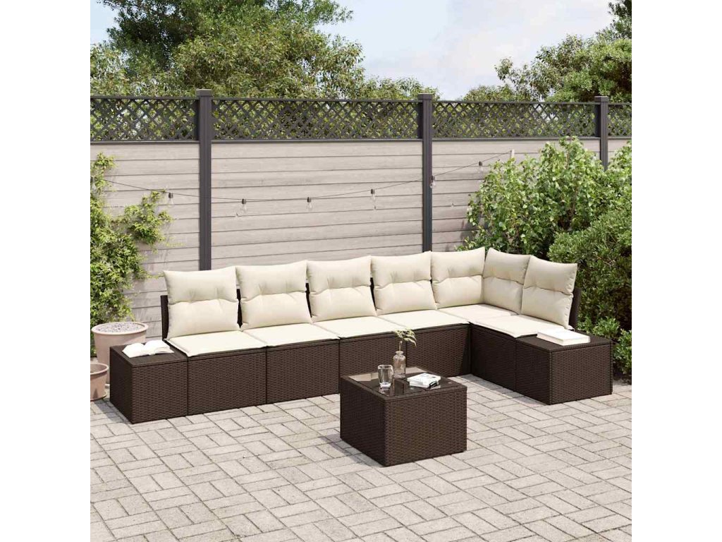 Sada zahradních pohovek 7 pcs Hnědá a krémová polyratan