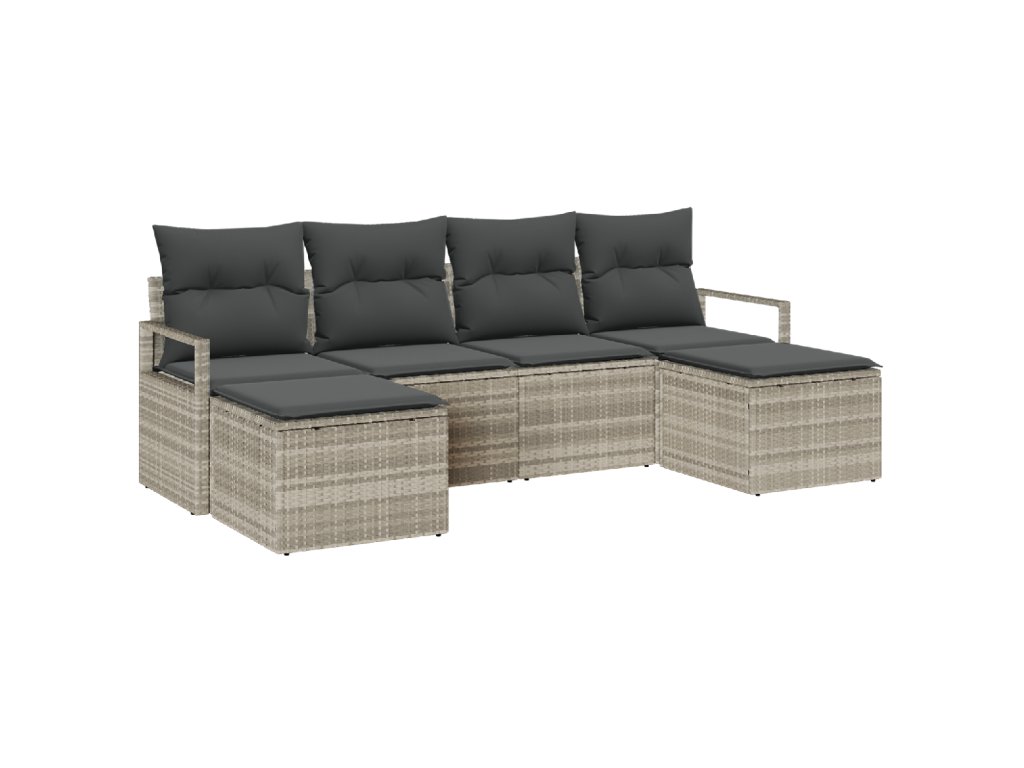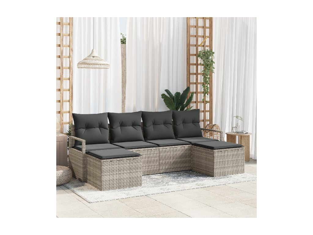 Tkaný poly ratan: Tento sofa set má odolnou konstrukci, která odolává UV záření a zůstává v pěkném stavu i venku. Tkaná textura dodává šmrnc a zajišťuje pohodlí pro jakoukoliv zahradu nebo terasu. Modulární konfigurace: Modulární design sofa setu umožňuje flexibilní uspořádání do jakéhokoli venkovního prostoru. Můžeš přeskládat části, aby ses přizpůsobil jak malým shromážděním, tak větším akcím. Tato volnost ti dává variabilitu a maximalizuje pohodlí. Zpracovaný zadní panel: Všechny části sofa setu mají pečlivě navržený zadní panel, takže vypadá skvěle ze všech úhlů. Tato pozornost k detailům zabezpečuje, že set vypadá super i v rohu zahrady, a dodává kouzlo a spolehlivou akcentaci venkovního dekoru. Pohodlné polštáře: Silné pěnové polštáře nabízejí super pohodlí a promění tvůj venkovní prostor na útulné místo. Polštáře mají odnímatelné potahy se zipem, takže je snadné je vyprat a udržovat pro nerušený odpočinek. Praktické opěrky rukou: Ploché opěrky rukou z poly ratanu doplňují moderní design a nabízejí praktickou podporu pro dlouhé lenošení. Přítomnost opěrek rukou zvyšuje ergonomické výhody, takže je tenhle set skvělý pro relaxaci, povídání nebo čtení venku.- Barva: Světle šedá